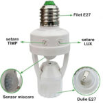 1. Adaugati senzor de miscare la o lumina existenta – Pur si simplu insurubati acesti adaptori pentru senzori de lumina in orice prize de lumina E27 existente pentru a activa automat iluminatul in subsoluri, garaje, camara, incaperi de depozitare, dressing-uri, putul scarilor, coridoare, camara , spalatorii, poduri, etc… Nu mai pasim intr-o zona intunecata si nu te ciocnesti de lucruri.